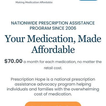 Prescription Hope charges a service fee of $70 a month for each medication (each one of your drugs) to streamline U.S.based pharmaceutical manufacturers’ patient assistance programs.